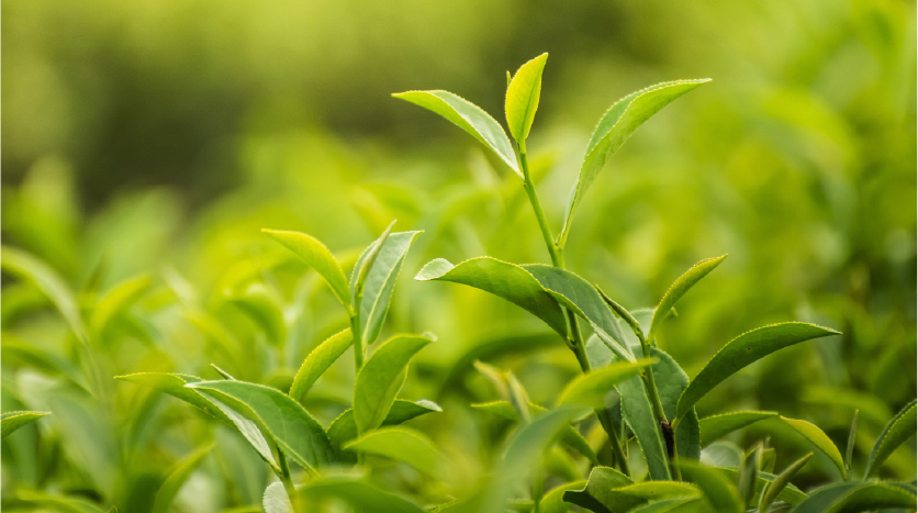 一陣微風輕拂樹梢,幾片茶樹葉飄落於燒開的水中,
