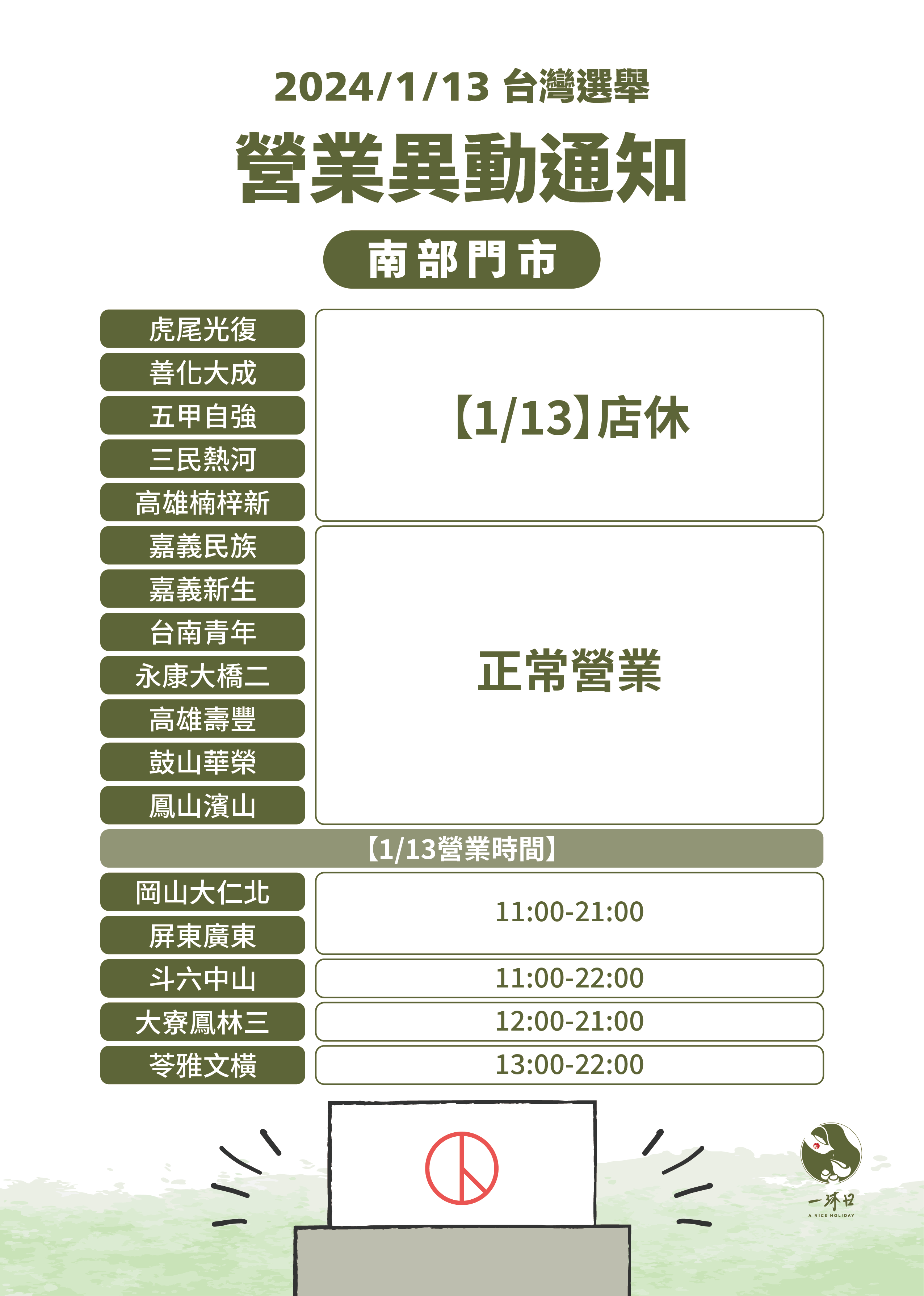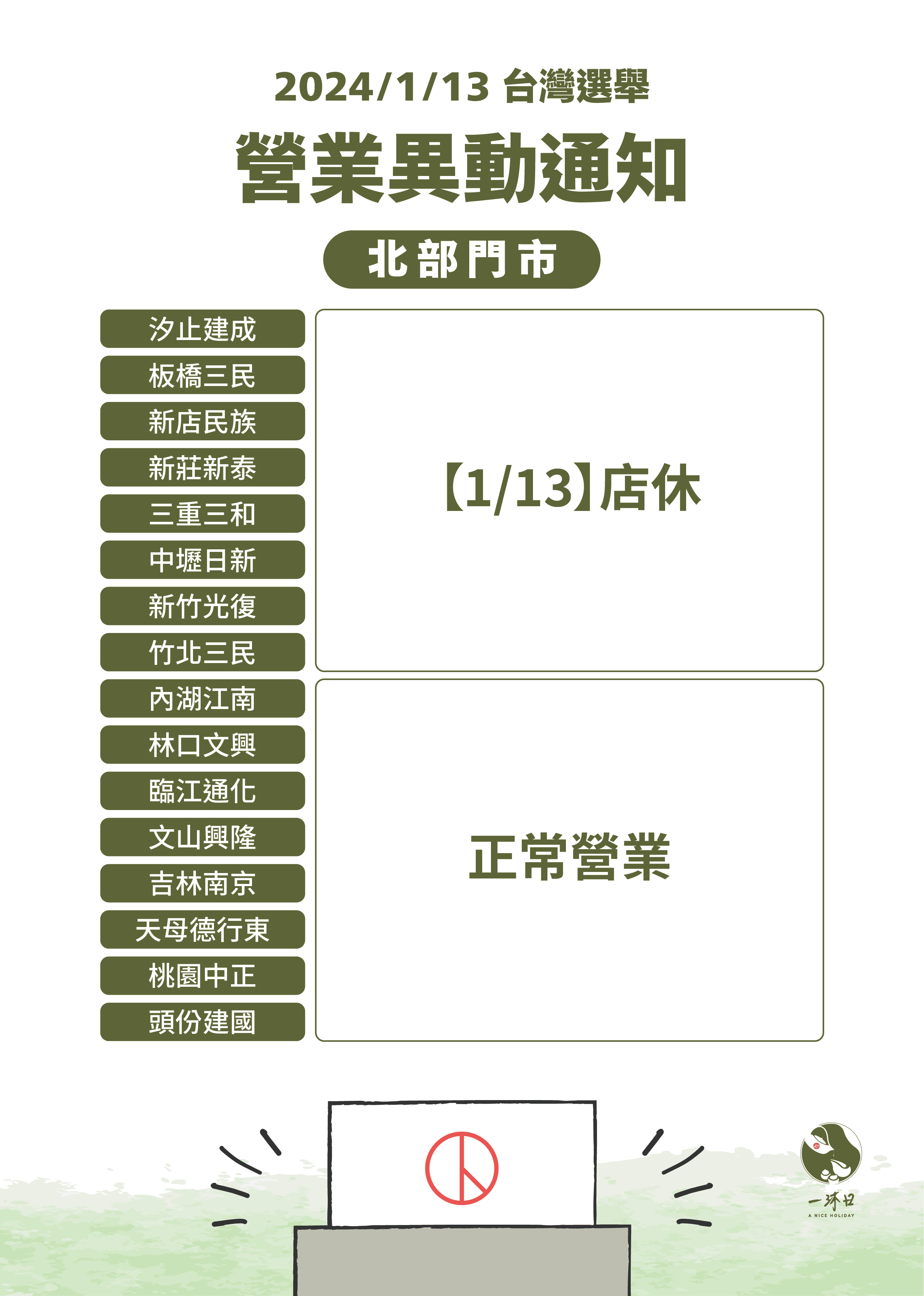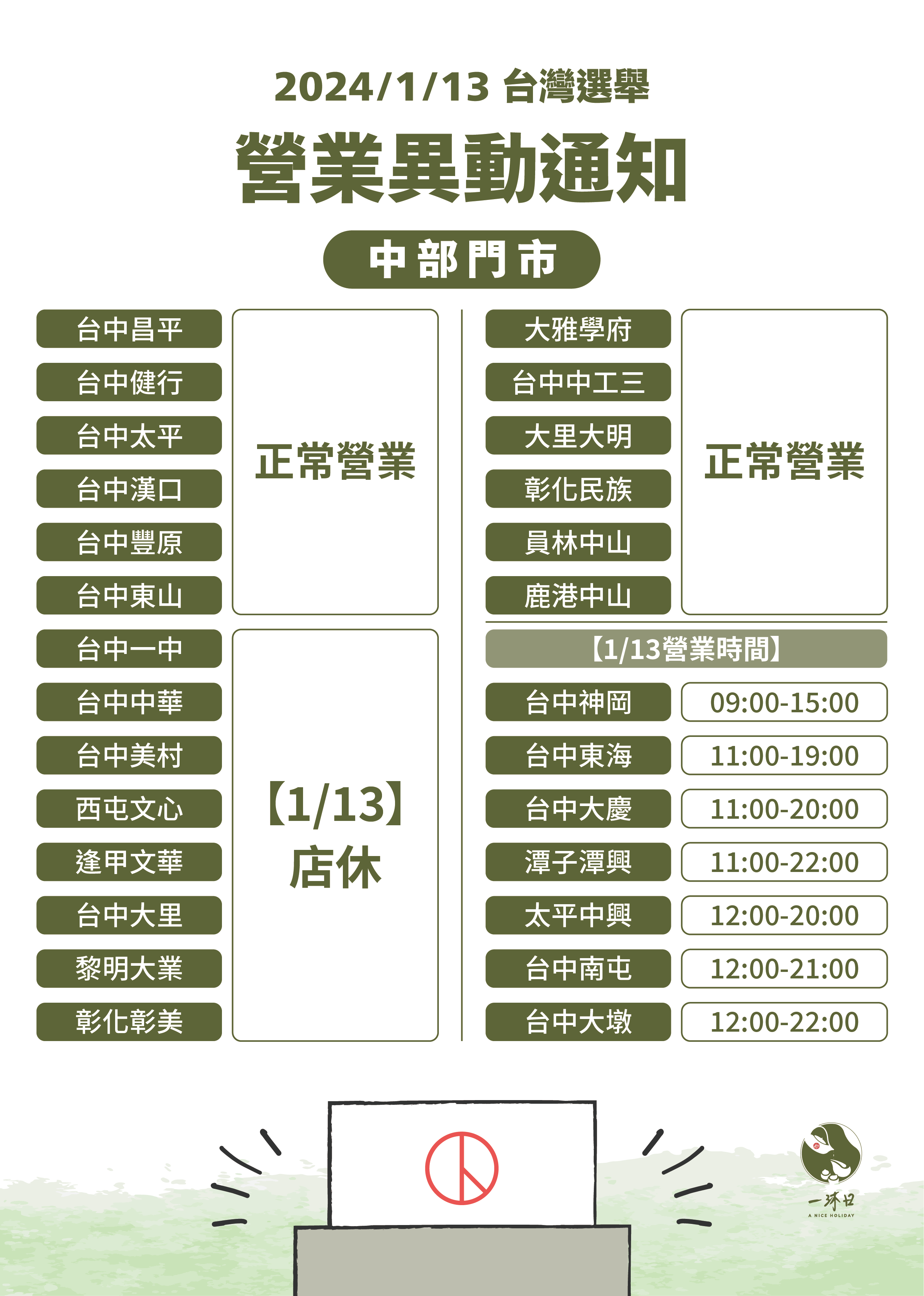 \選舉日營業時間公告/