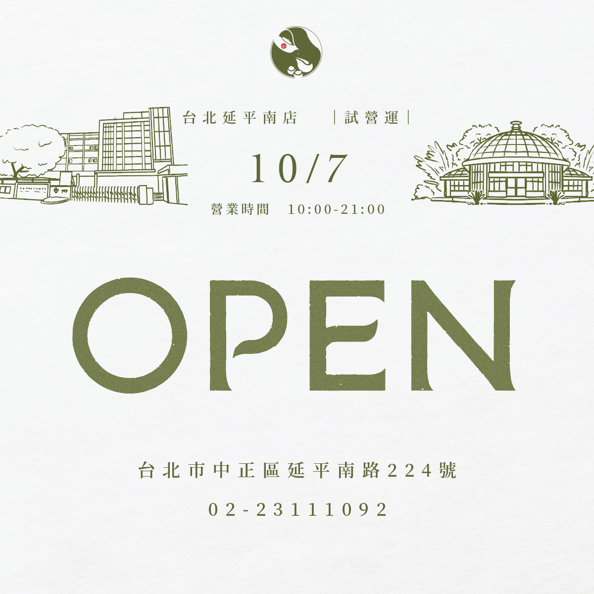 🌱台北延平南店 門市地址|台北市中正區延平南路224號 營業時間|10:00-21:00 訂購專線|02-23111092